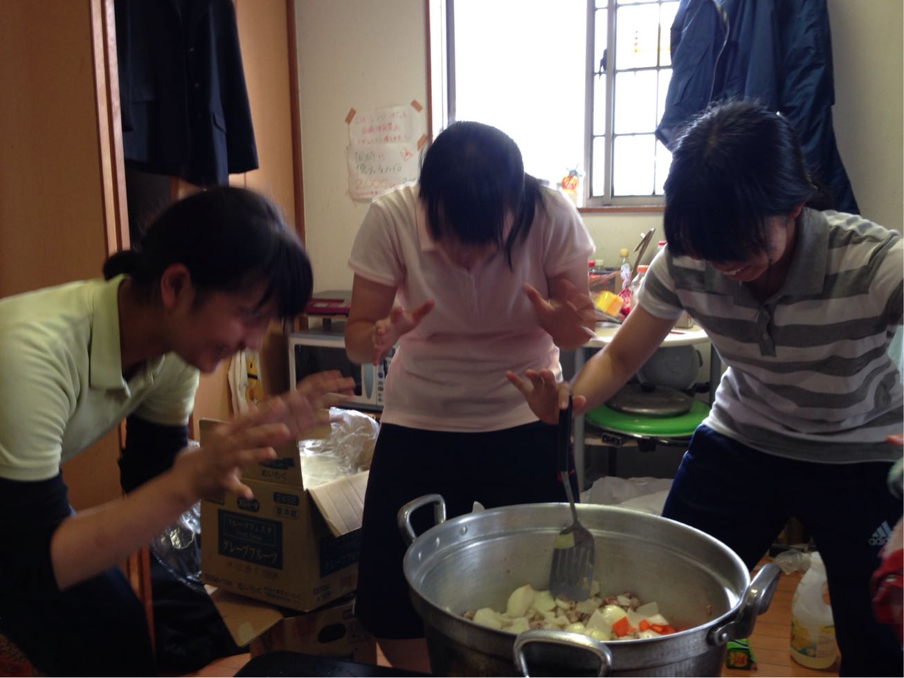 明日振る舞うカレーの準備ガールズ