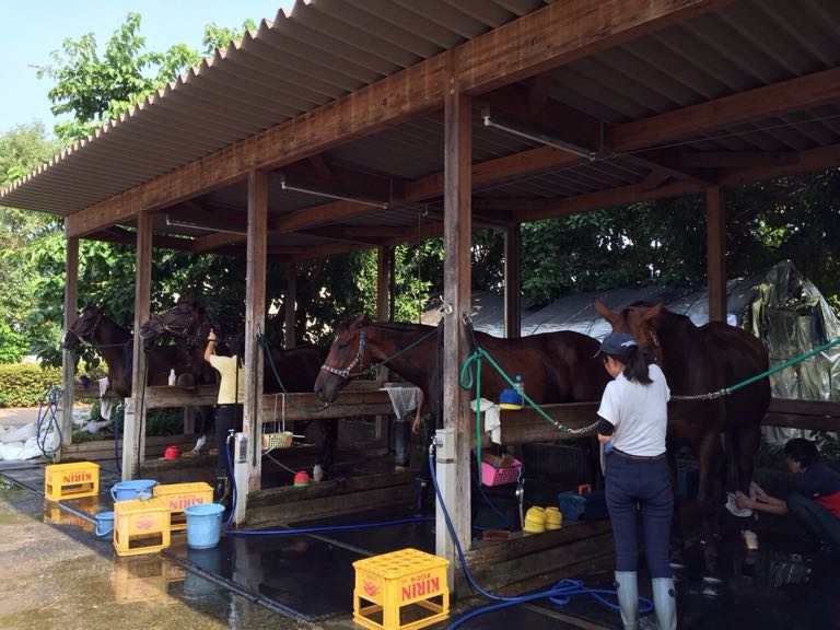 蹄洗場で、水がキラキラ馬に反射しているのを見ると夏を感じるのは私だけではないはずです…!