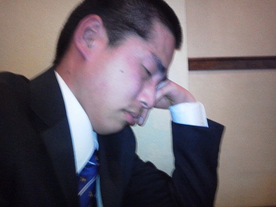 監督と、その話を聞く井上と、バッチリカメラ目線の井川先輩(笑)