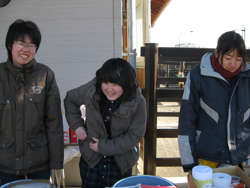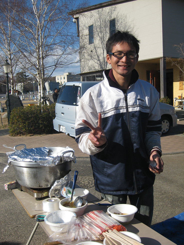 馬術部関係者の方には実際に馬に乗っていただける会なのですが、一般の方でもお越しいただければお餅やけんちん汁を振る舞わせていただきました。