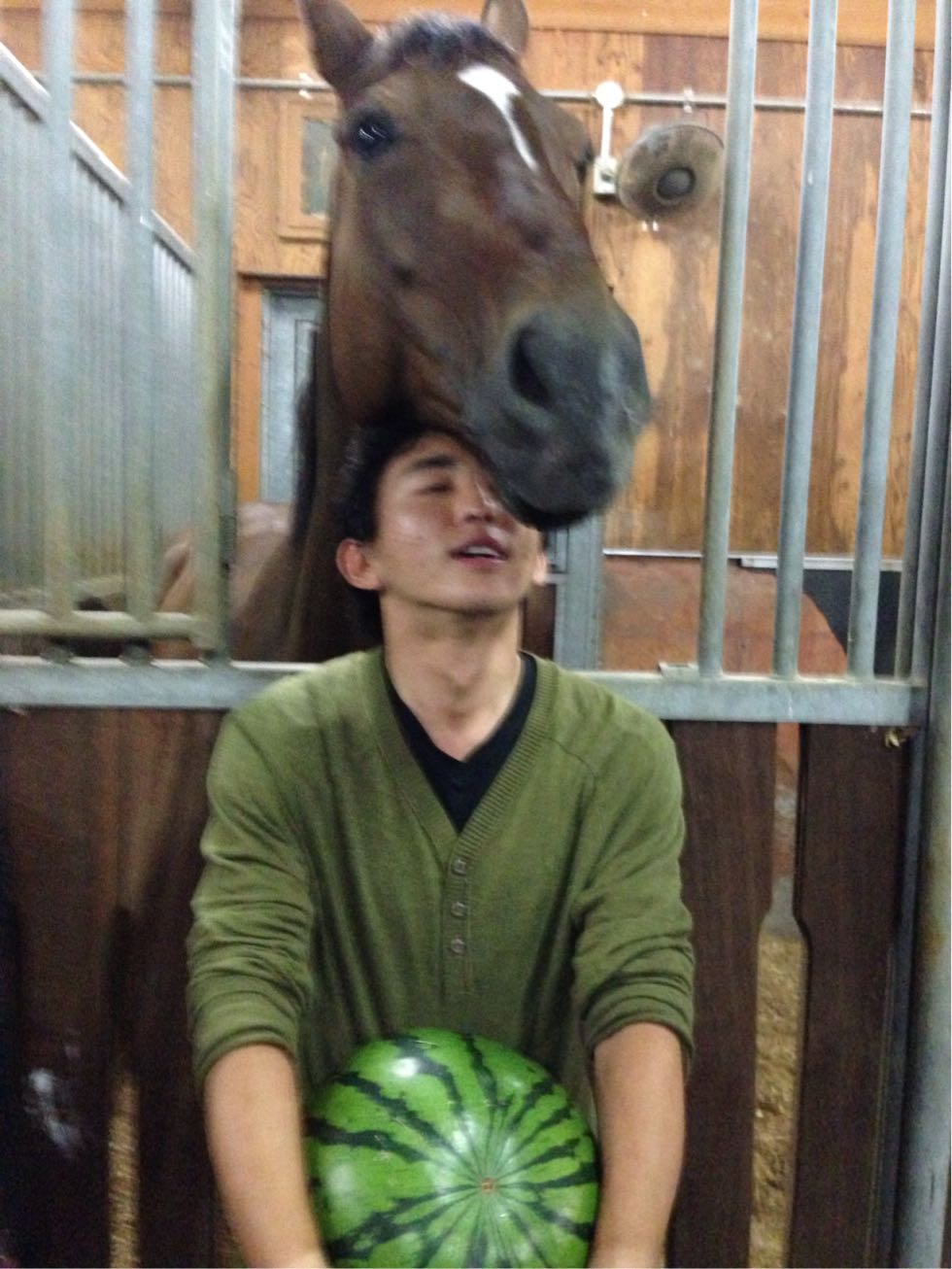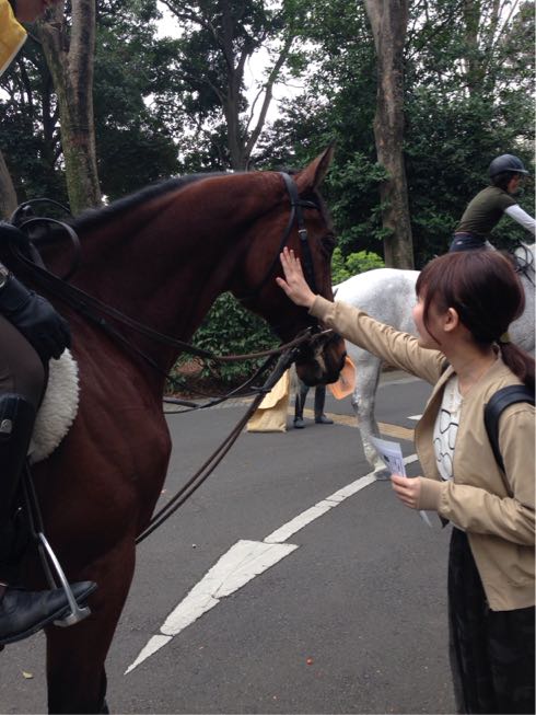 (松村先輩が馬に抱きつく姿はときどきお見受けしましたが、静止画では初めて!記念に)