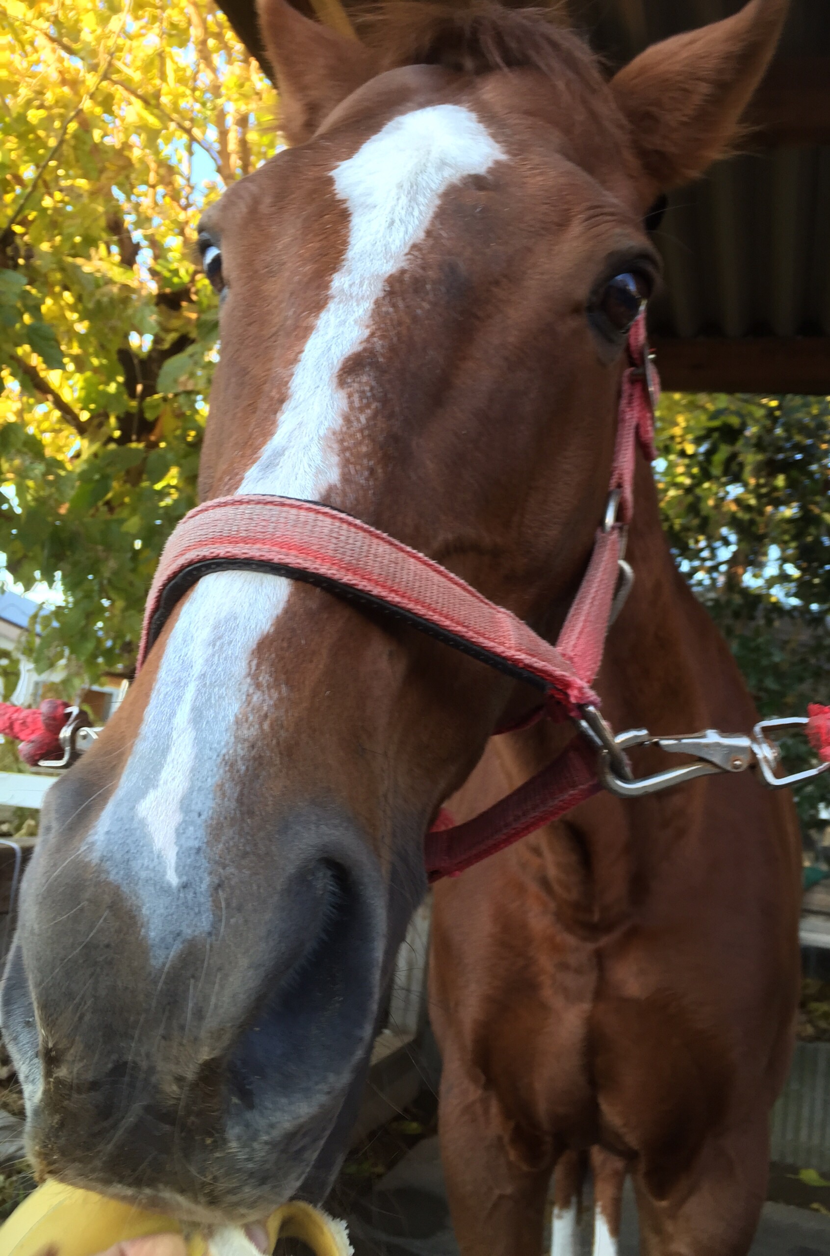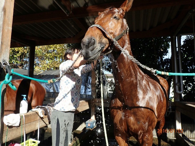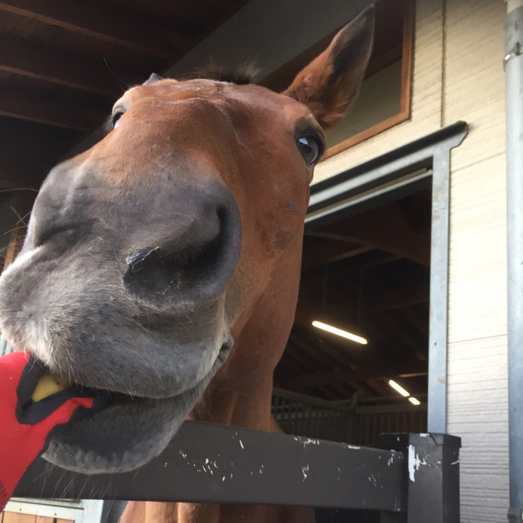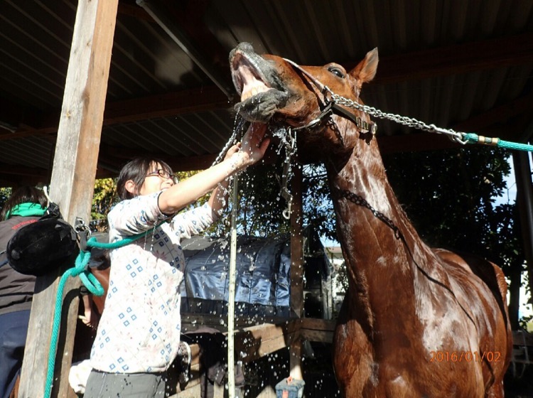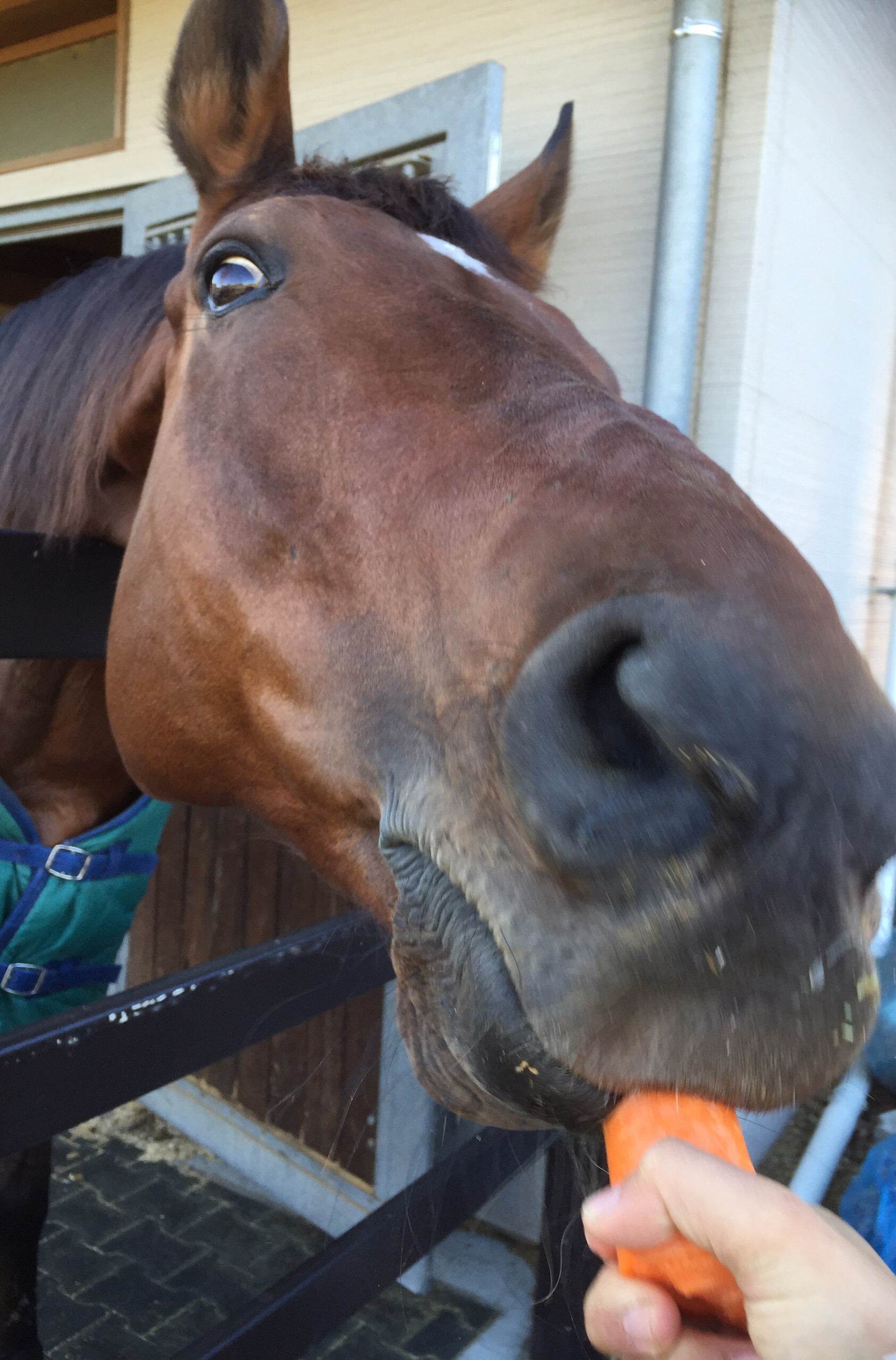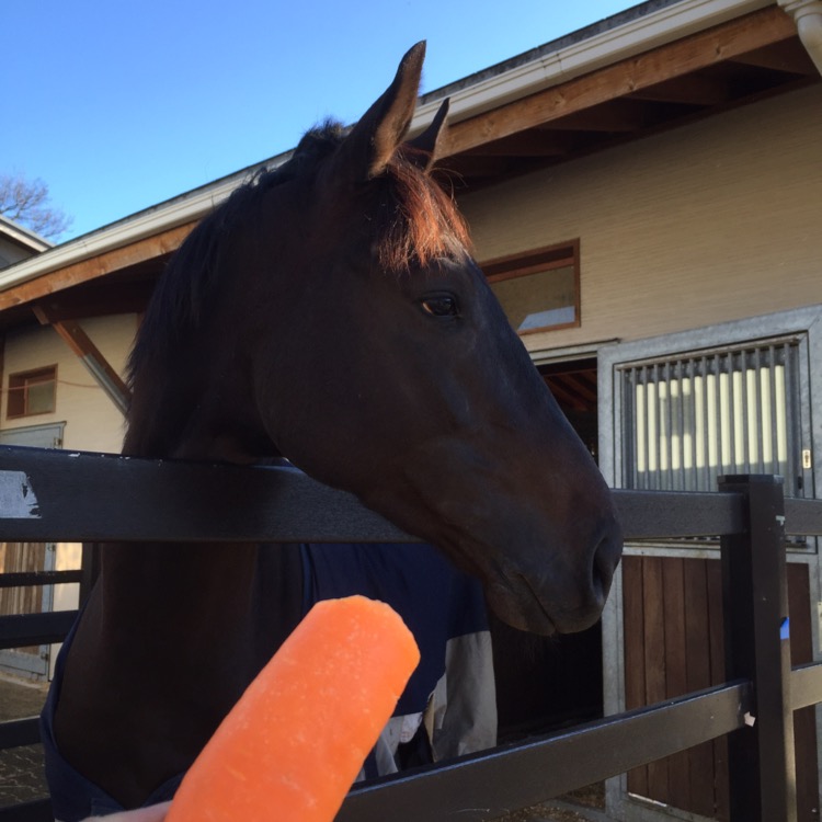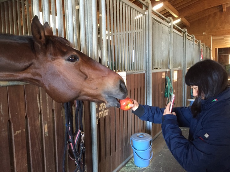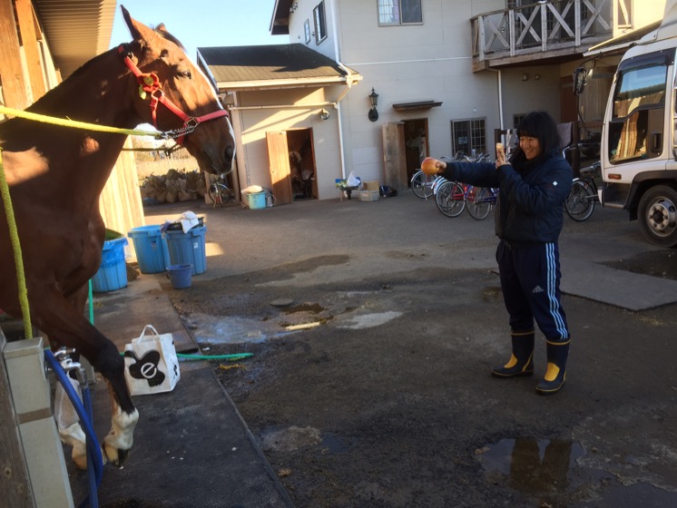 (松村先輩が馬に抱きつく姿はときどきお見受けしましたが、静止画では初めて!記念に)