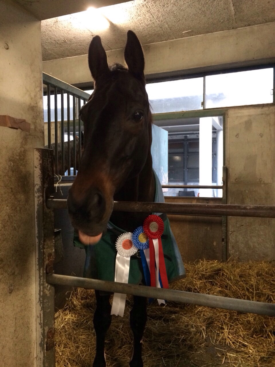 帰ってきた馬達の馬房の前にはリボンが所狭しと並んでおります、これは自ずとニッコリしてしまいますね!