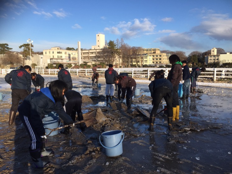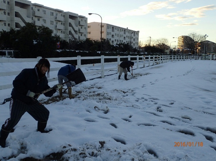 みんなで雪をかきます。