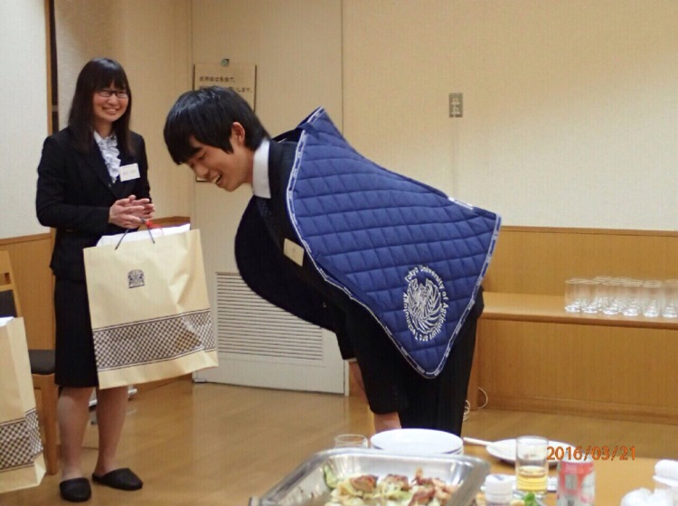 この後も、卒業された大先輩の方々や田谷先生、野口監督、渡辺先生からお祝いのお言葉が送られ、最後は後援会の樋口さんが音頭をとって皆で「おうまの歌」を熱唱!