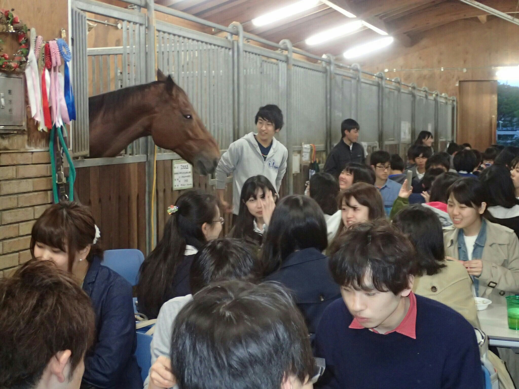 ではまずは校内お出迎えと体験乗馬と新歓の様子をばばばん!と一挙に参ります_(:3 」∠)_