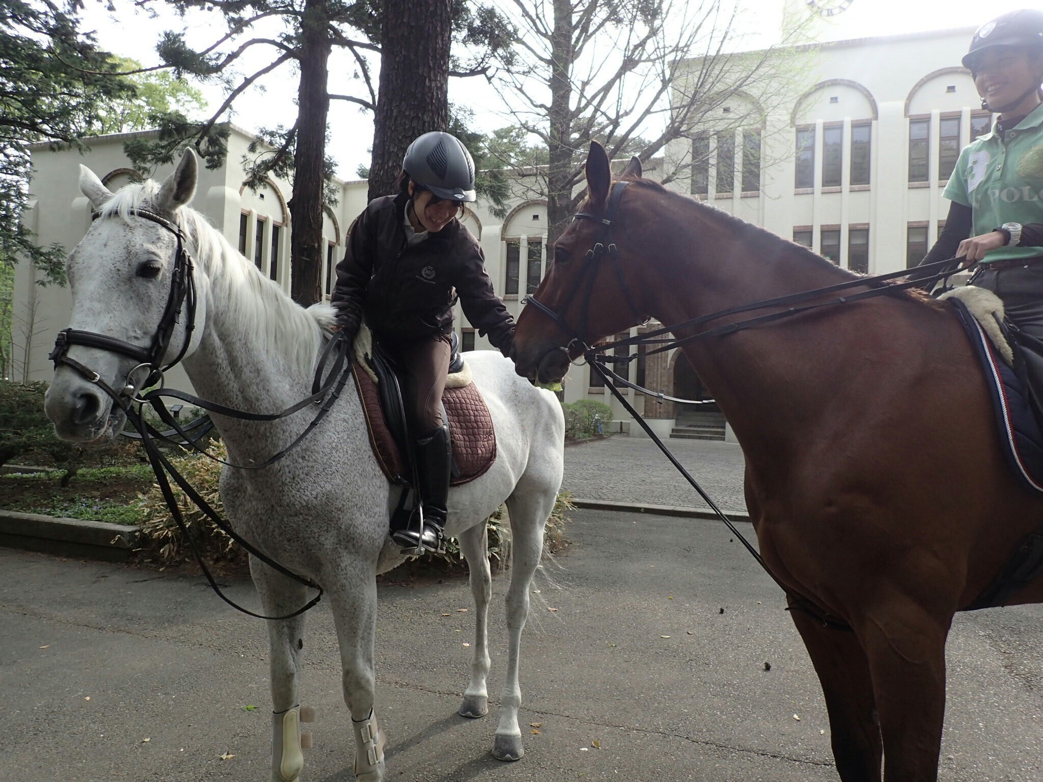 冬の日もなんだか楽しそうな馬術部員(´ºωº`)