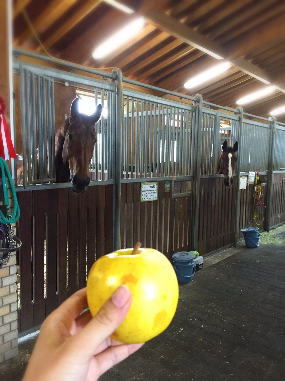 そしてそして、自分たちが味わった後はお馬たちともそれを共有しに行くのが馬術部員の性。