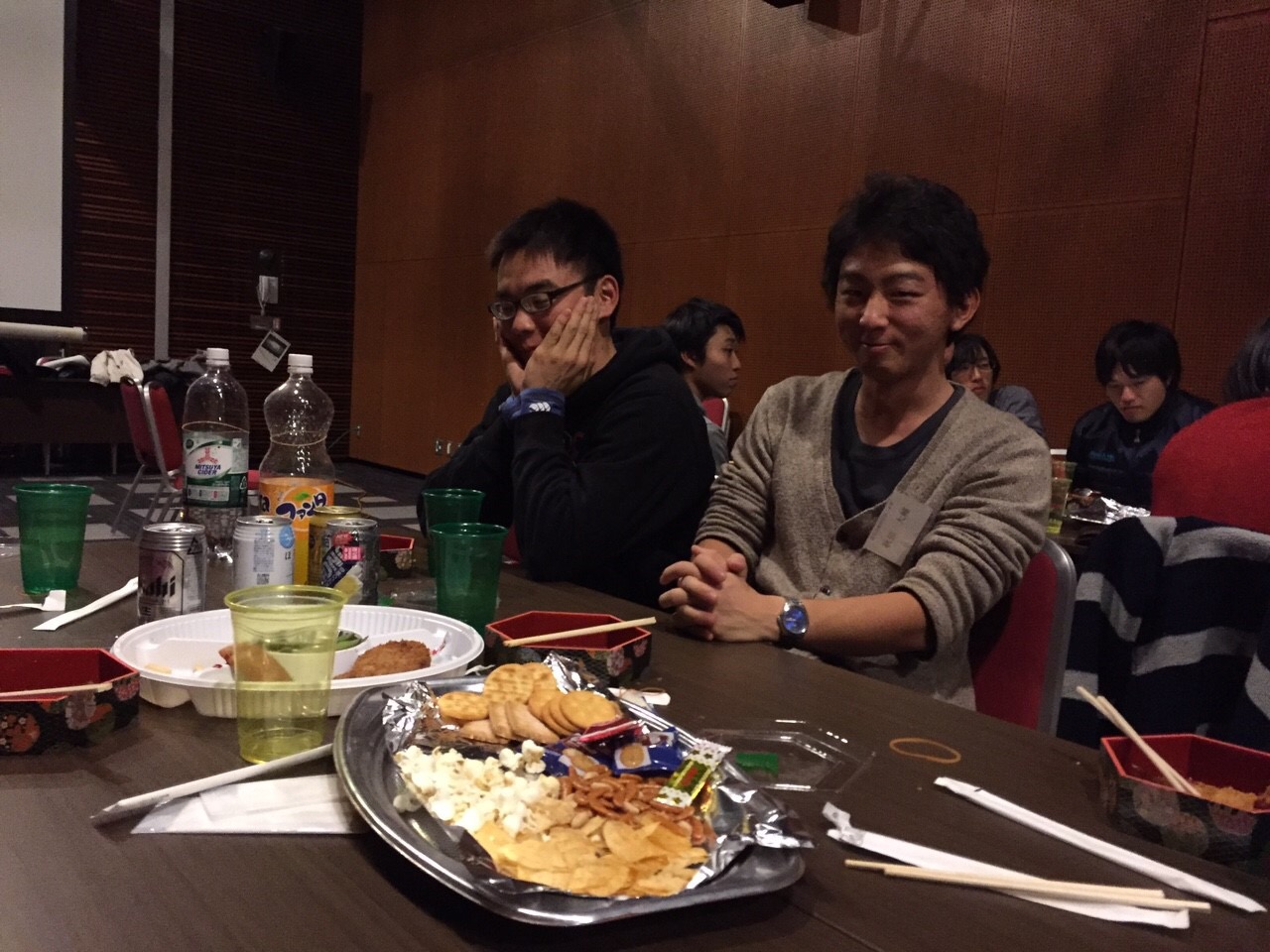 虫歯ポーズなのか、ただの頬杖なのか…判断が難しいポーズをする松村先輩とニコニコな秋田先輩!