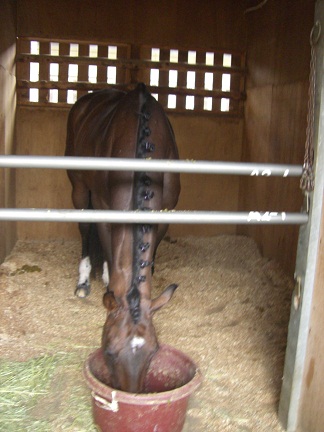 春風も馬場馬術に出場するので髪編みをしてもらってます