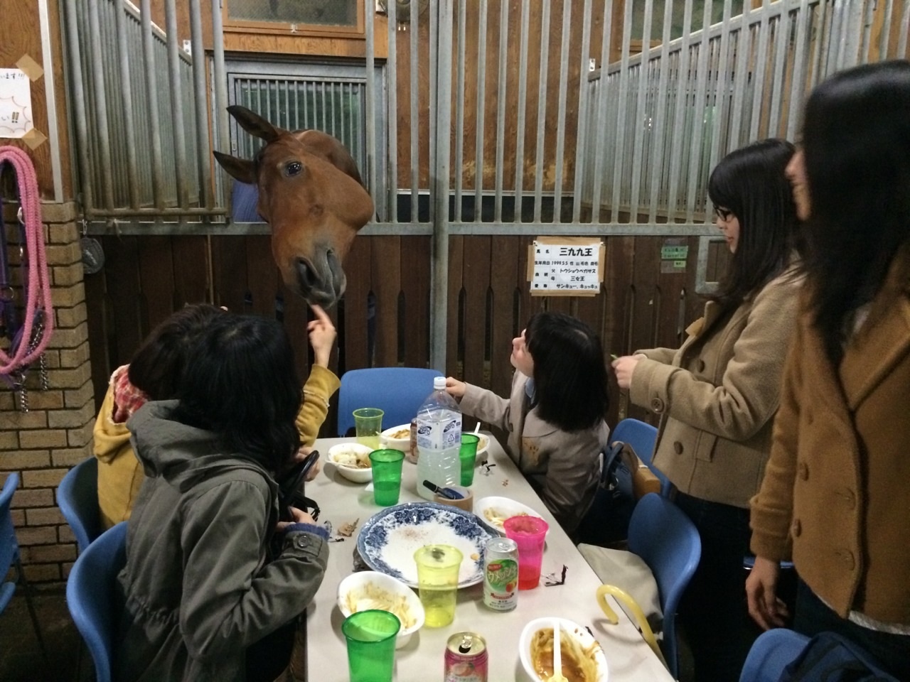 私が去年馬術部の新歓に来たときは、「こんな所で馬に囲まれて食べるのか!」と少し驚きました(笑)