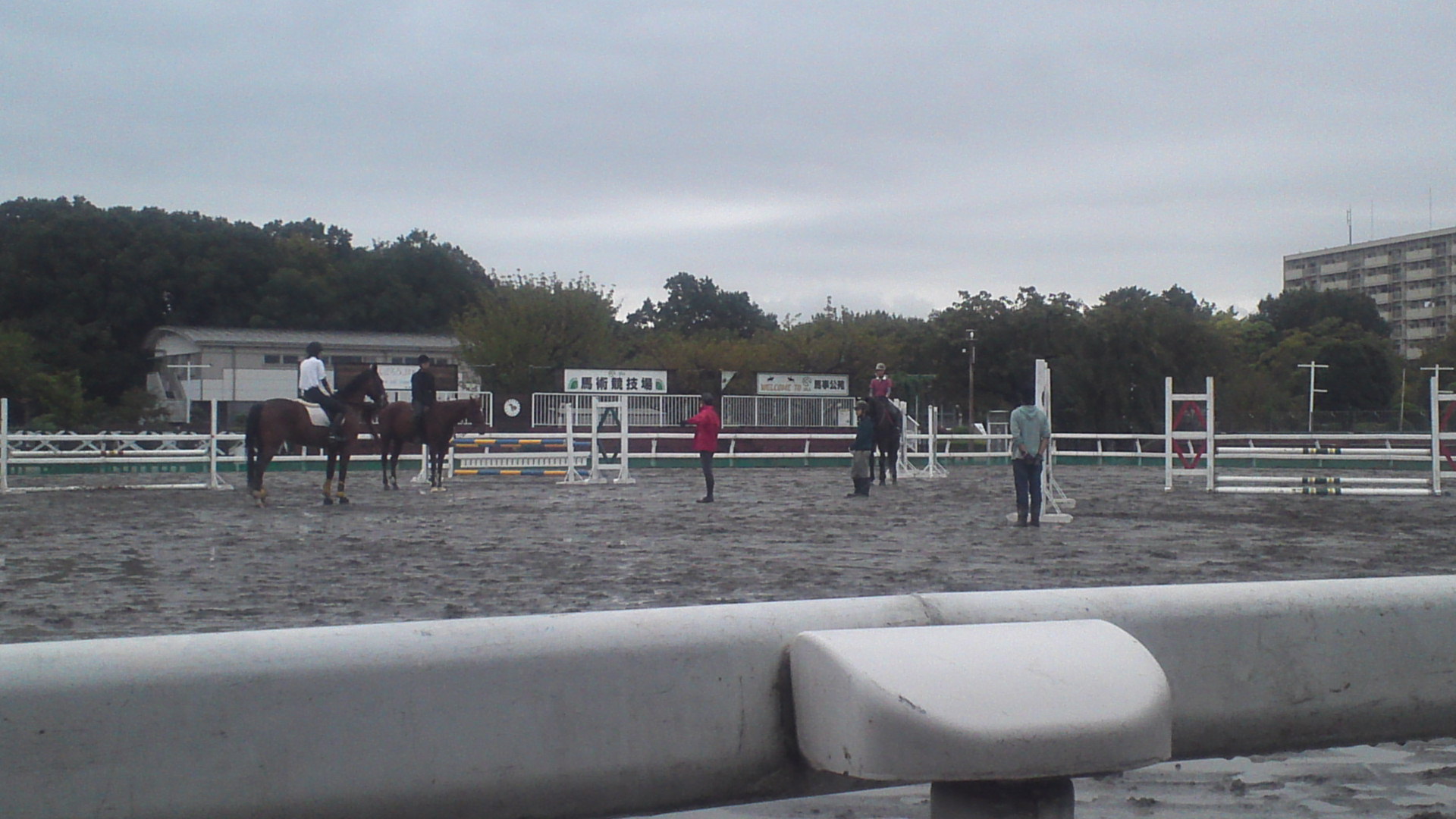 雨足が弱まったところでインドアからメインに移動して障害。