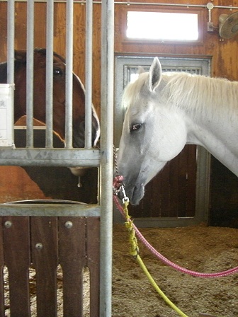 隣の馬房の旋風ことモンちゃんとの仲は以前より険悪になったような、、
