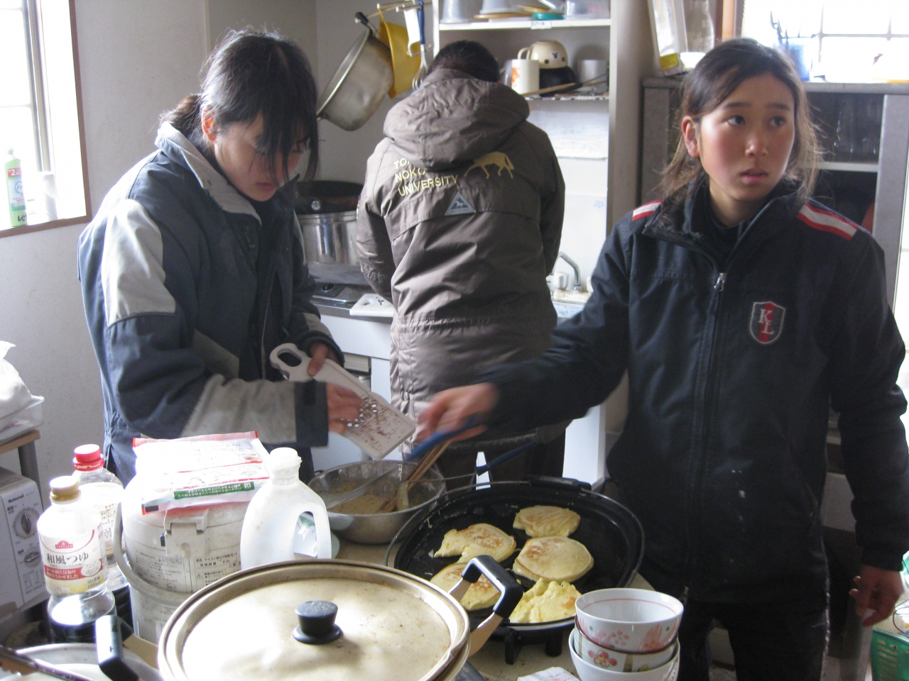 水濠も練習します お昼ご飯にホットケーキ!!