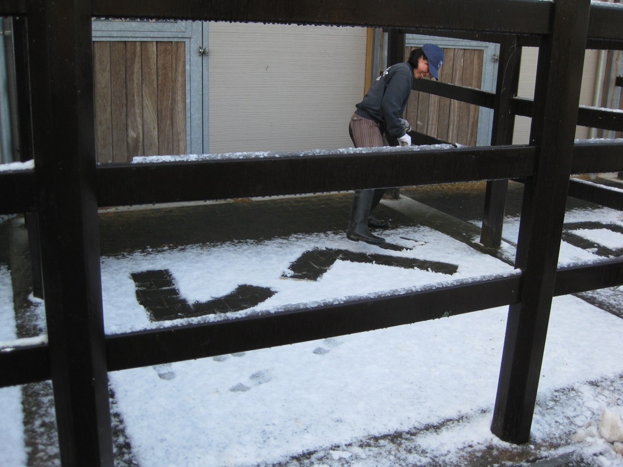 二日目 夜のうちに雪が積もってしまったので雪かきから…