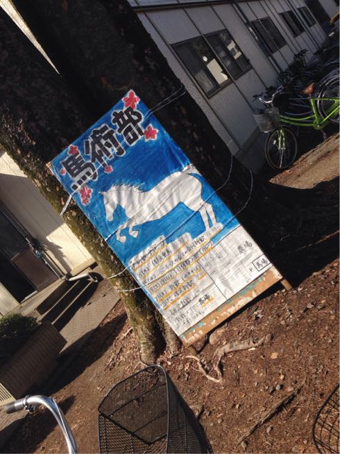 馬術部員も構内で看板を片手に宣伝活動しております、気軽に声をかけてくださいね!